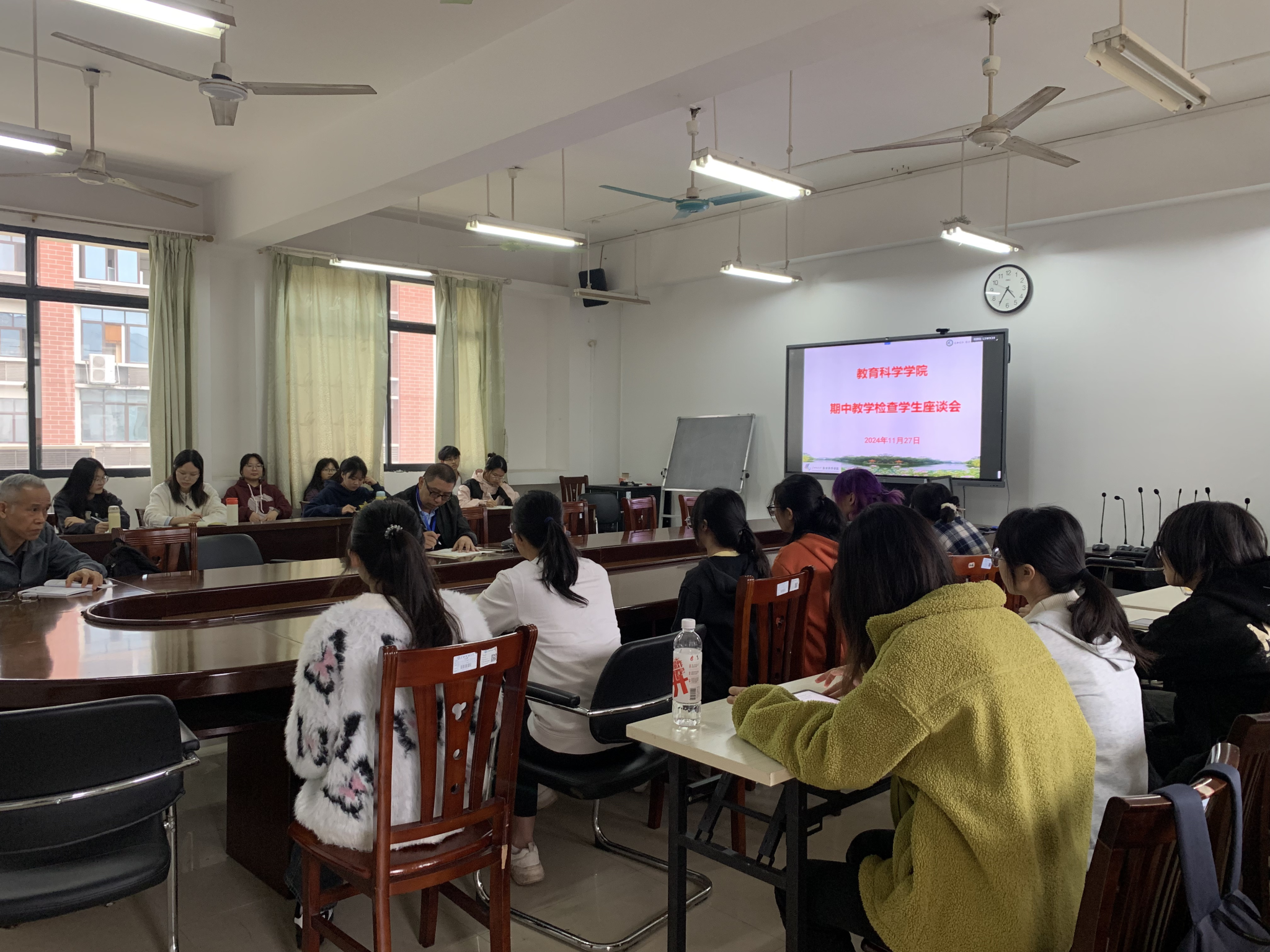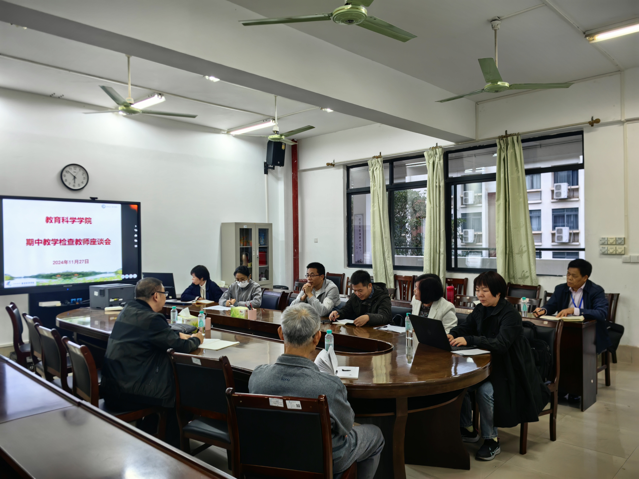 此次座谈会旨在通过听取广大师生的意见和建议,了解教学过程中存在的问题,及时发现并解决教学问题,为今后教学工作提供有效的改进方案。学院教育学系副主任阮士桂老师、教学秘书何璐老师、韦莉娜、梁洪坤、叶敏、欧贤才、刘金明等教师代表以及2022级、2023级、2024级18位学生代表了参加座谈会。