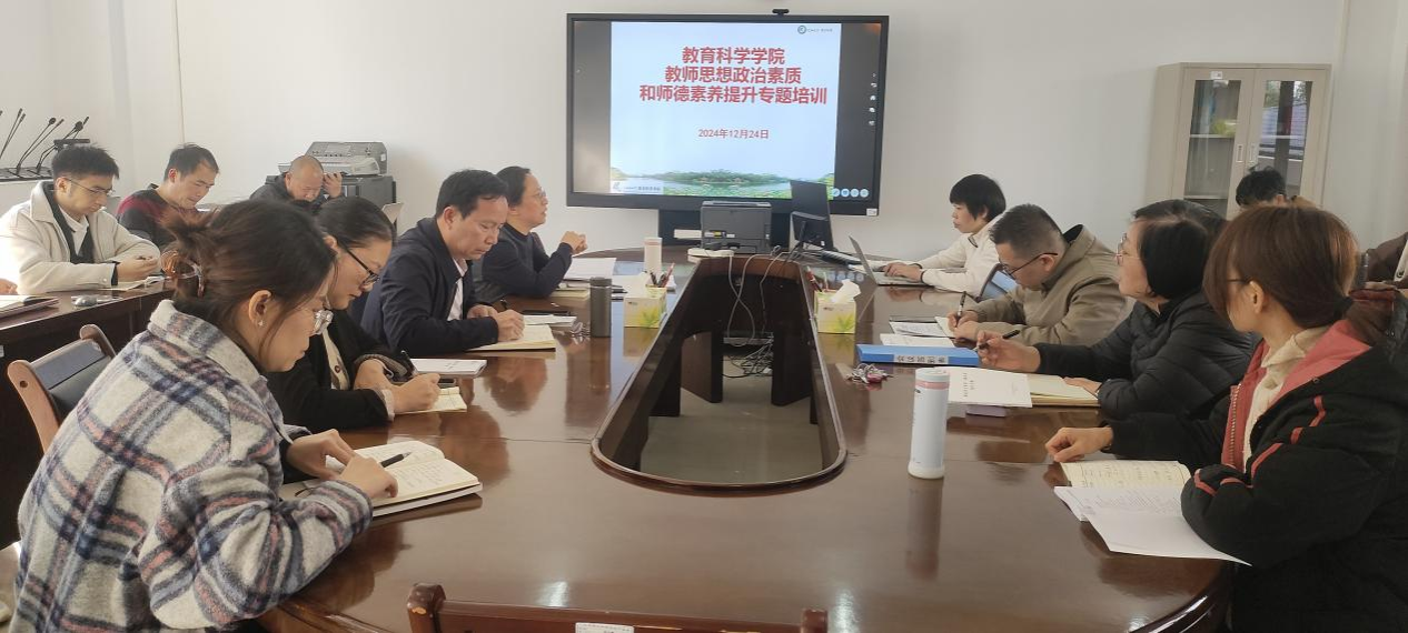 12月24日下午,我院在至善楼409室开展教师思想政治素质和师德素养提升专题培训,培训由学院院长张进清教授主持,学院全体教职工参加培训。