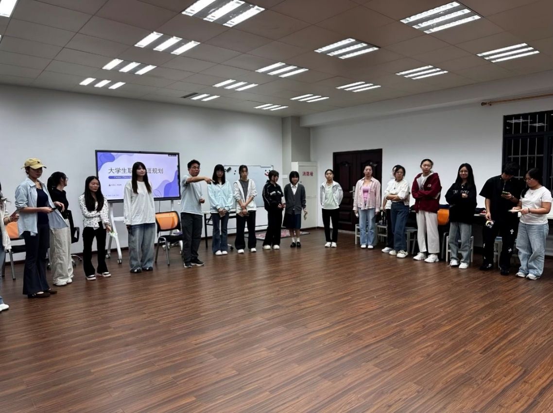 2025年10月21日晚,2023级应用心理学1班在至善楼606团辅室召开职业生涯规划主题班会,此次班会由班主任刘金明老师主持,2023应用心理学1班全体同学参与。本次班会以心理剧的形式开展,通过划分目标小组、心理剧演出、抽取启示卡片三个环节,为同学们的职业发展之路点亮了明灯。