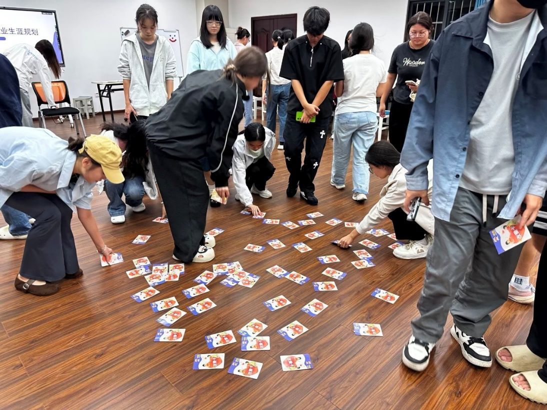 最后,每位同学都抽取了一张属于自己的启示卡片。卡片上的话语或温暖鼓励,或深刻警醒,如同一束光,照亮了同学们内心深处对职业规划的思考。大家静下心来,联系自己的实际情况,认真思考未来的发展方向。有的同学独自思考自己的感悟与抉择,有的同学则与身边的同学交流分享,共同探讨如何将启示转化为实际行动。