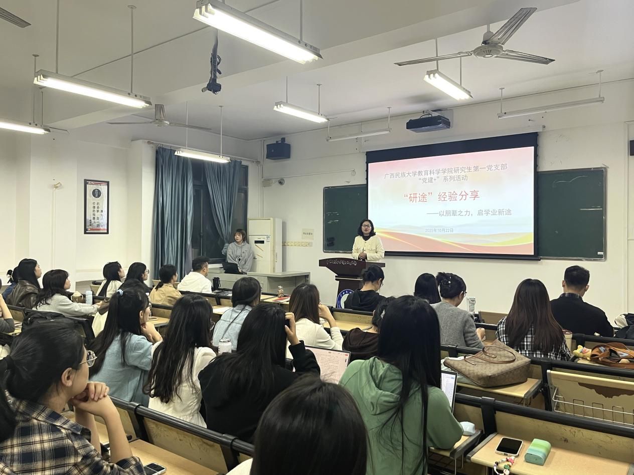 10月22日晚,必威西汉姆联官网研究生第一党支部于致远楼509教室顺利举办了“党建+”系列活动之“学业经验分享会——以朋辈之力,启学业新途”。研究生第一党支部书记庞丽老师、支部党员以及入党积极分子共计40余人参与了此次活动。