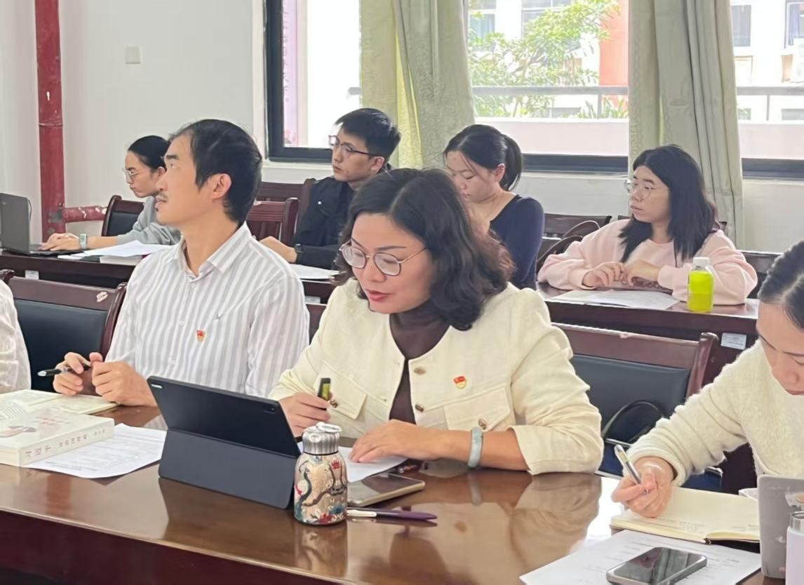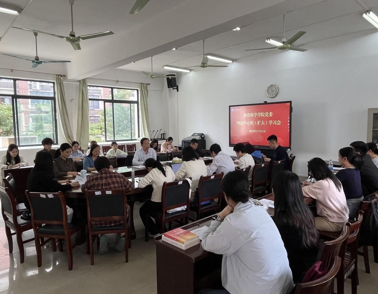 会议重点传达学习了中国共产党第二十届中央委员会第四次全体会议公报精神。会议指出,党的二十届四中全会科学擘画"十五五"时期经济社会发展蓝图,系统阐明了指导思想、主要目标和"六个坚持"基本原则,为推进中国式现代化建设指明了前进方向。学院党委书记王禄平同志、研究生第一党支部书记庞丽同志、教育学系党支部支委陆钰莹同志、研究生第二党支部书记欧贤才同志分别发言,大家紧扣主题,结合自身工作实际和学院发展,深入交流了学习体会,扎实推进理论学习取得实效。