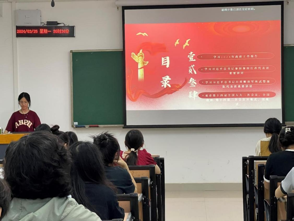 各团支部通过主题宣讲、观看两会视频报道和互动问答等多种形式,集中学习两会精神,了解两会的重要意义,掌握两会的组织结构和议程安排,深入思考两会对国家发展和未来的影响。同时还组织团员青年进行相关的主题演讲和发言,鼓励大家更好地理解国家大事,增强同学们的政治责任感和使命感。同学们通过学习,对国家未来发展规划有了明确认识,深刻体会到了我国中国特色社会主义社会政治制度的优越性,进而增强了制度自信,有助于同学们更好地贯彻落实“两会精神”,提高自我政治素养。