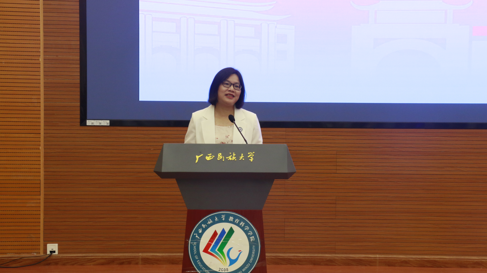 典礼第三项是教师代表庞丽副教授发言。她与同学们分享了什么是大学精神。她认为“大学之道,在明明德,在亲民,在止于至善”,希望同学们秉持大学精神展现青春担当,勤于学习,全面发展,成为让社会、让国家变得越来越好的人。
