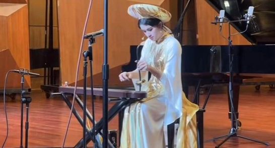 图8 京族博物馆馆长学生唐佳葭在演奏独弦琴(图源网络)