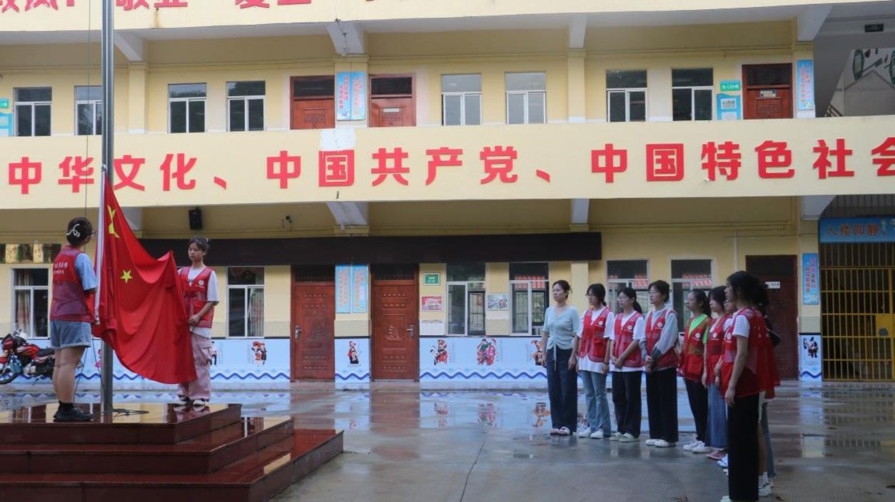 图5 志愿团队在京族学校升国旗
