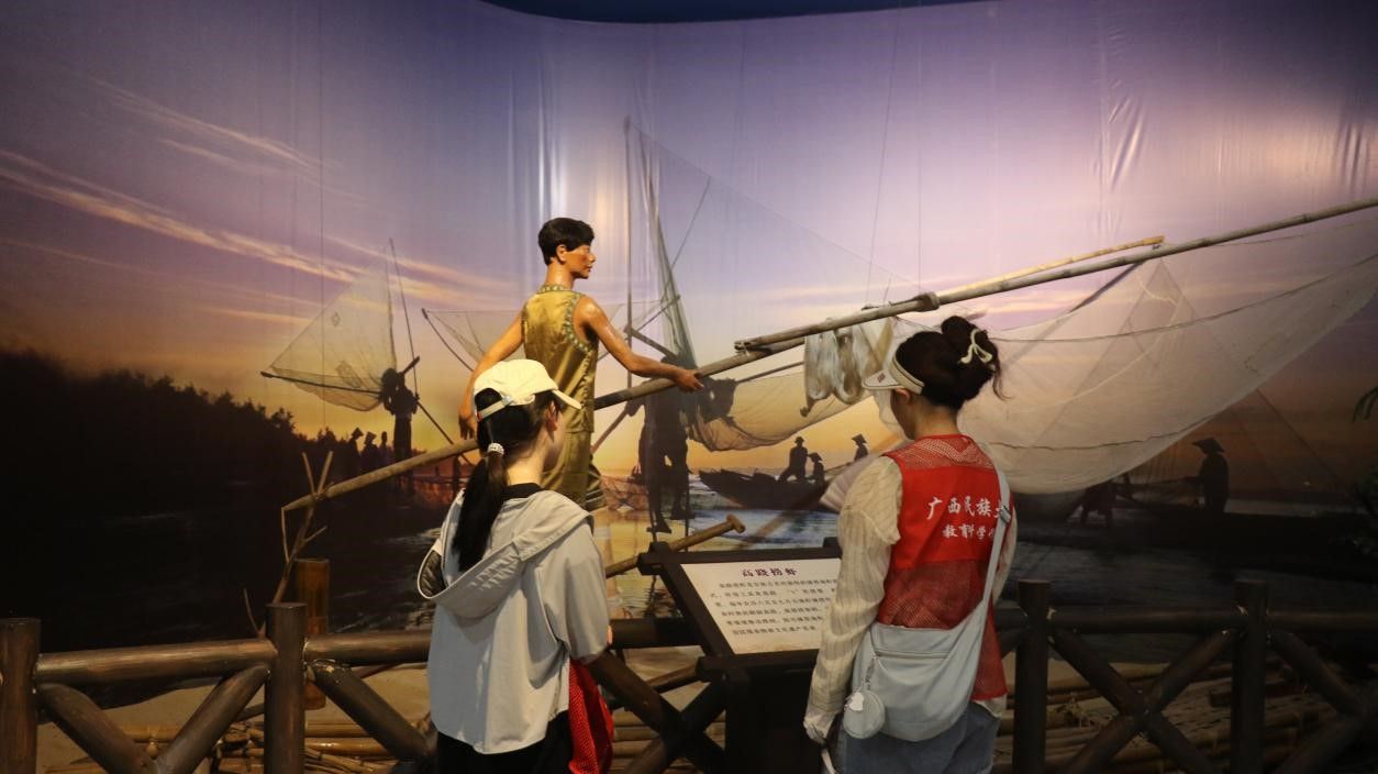 图1 志愿者参观京族高跷捕鱼