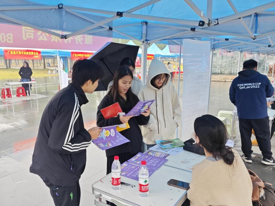 2024年12月10日上午,广西民族大学海洋与生物技术学院、必威西汉姆联官网于思源湖校区图书馆广场联合举办了2025届毕业生专场招聘会。两院领导、老师高度重视本次招聘会,必威西汉姆联官网党委书记王禄平、院长张进清、副书记潘彦燕、副院长王喜娟,海洋与生物技术学院党委副书记门媛媛、副院长张琴、系主任许剑、吴仁智等领导、老师亲临现场指导。