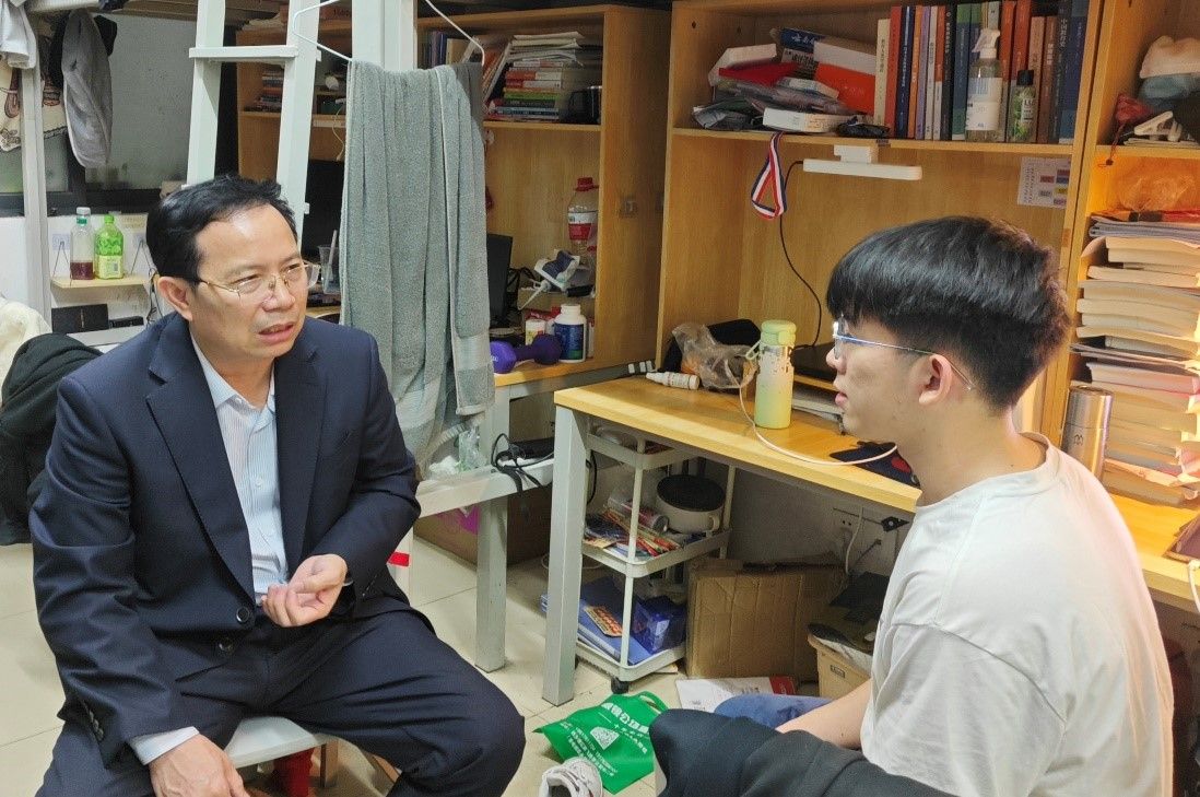 为切实筑牢校园安全防线,优化育人环境。3月4日下午,我院党委书记王禄平、党委副书记邹同霞、副院长赵磊岩率辅导员王卓、黄勇林、研究生秘书罗思梅及学生党员先锋队、学生会干部代表,深入学生宿舍开展安全卫生专项检查,全面排查安全隐患,推进文明宿舍建设。