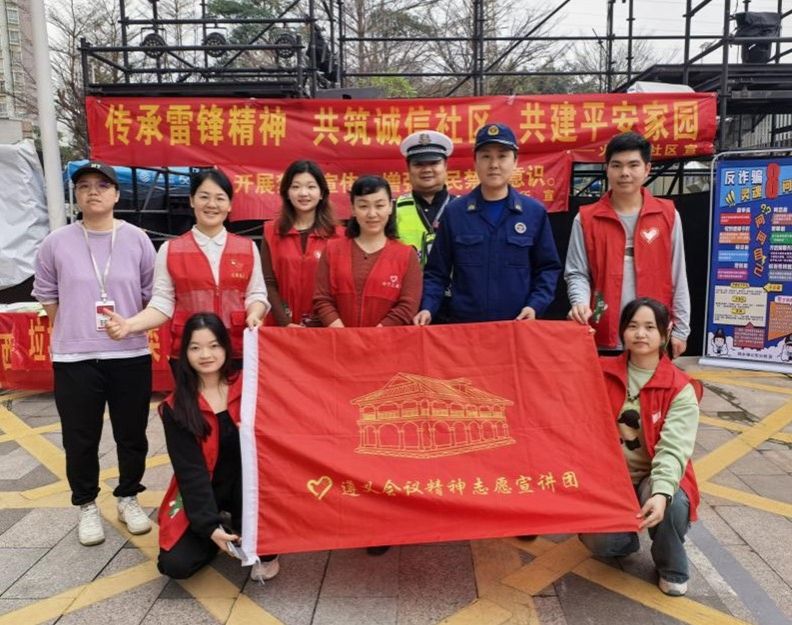 活动中,宣讲团通过多种形式传递了遵义会议精神。“遵行致远”宣讲团不仅承担了主持工作,还精心准备了开场舞《Weplash》。此外,宣讲团成员还协助社区工作人员布置场地、维持秩序、发放宣传资料,用实际行动践行了雷锋精神。