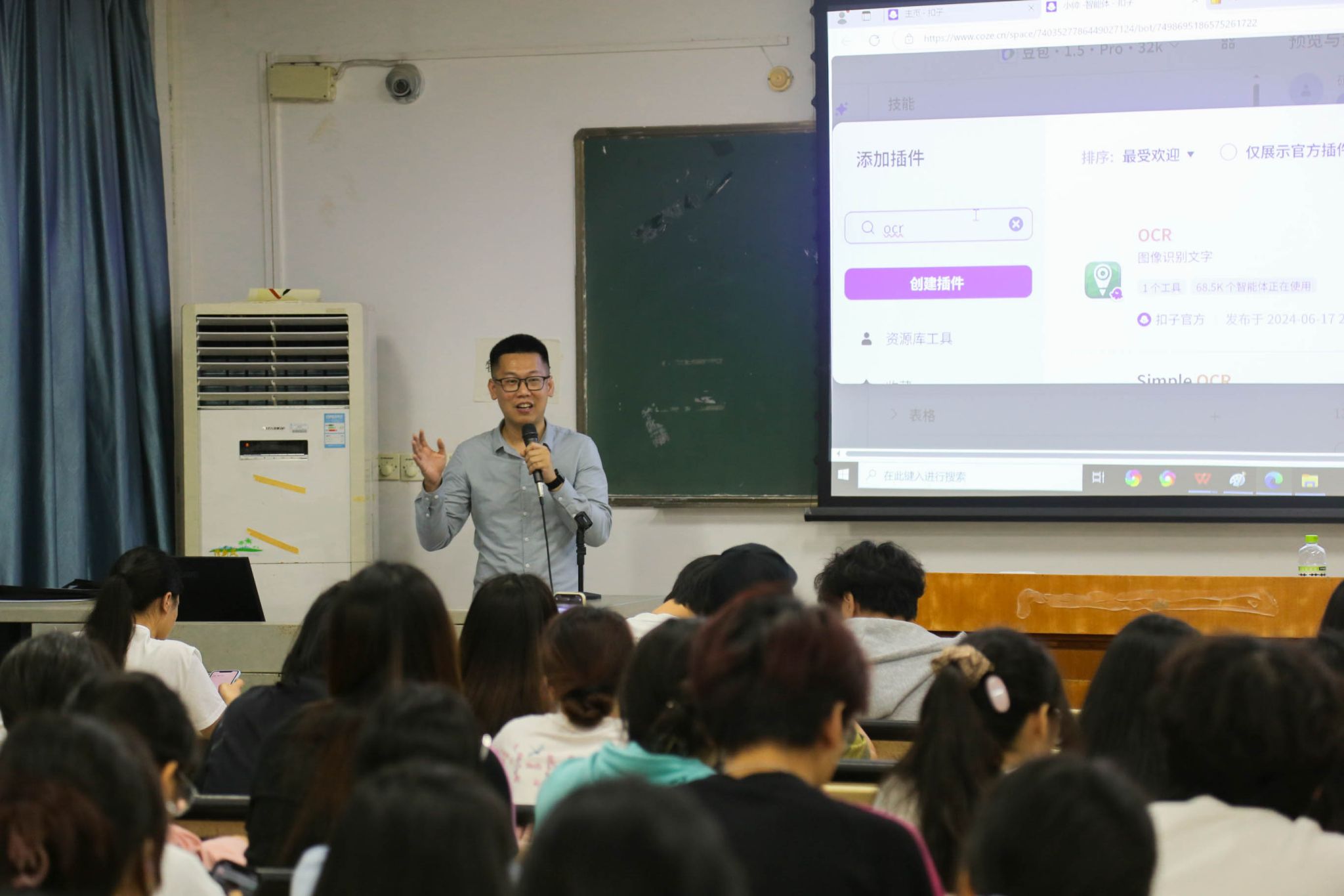 在活动中,老师围绕“AI智能体推动升学指导”展开,通过实际操作演示,向同学们展示了如何正确使用AI智能体来制作 PPT、撰写简历等实用技能,同时深入讲解了如何利用AI分析数据,让同学们认识到AI智能体不仅是一种技术工具,更是一种能够推动学科发展的强大动力。此外,早飞教育还结合自身产品优势向同学展示公司在AI智能体的学习与升学指导方面的优势,吸引了学院同学的兴趣。