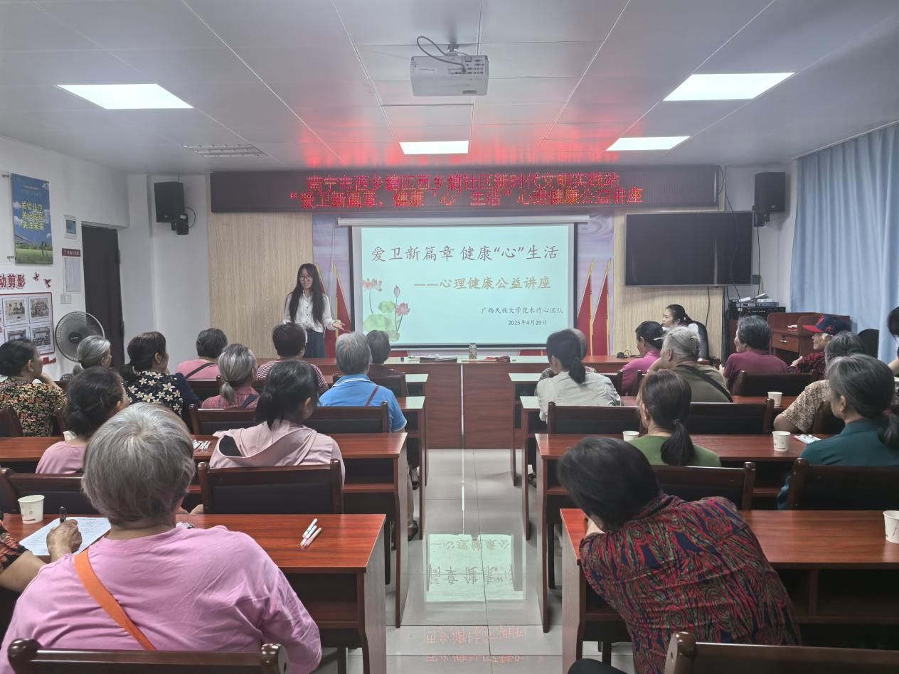 2025年4月29日,必威西汉姆联官网“花木疗心”团队走进西乡塘社区,为社区老年人举办了一场主题为“爱卫新篇章,健康‘心’生活”的心理健康公益讲座。此次活动旨在关注老年人心理健康,提升他们的生活幸福感,同时也引发了社会对老年群体心理关怀的进一步思考。