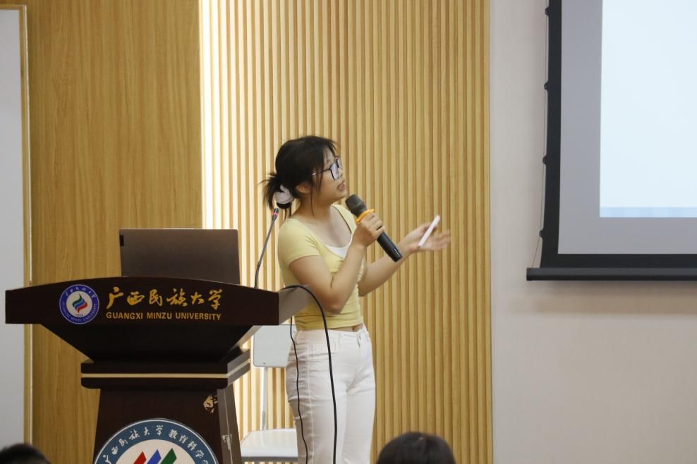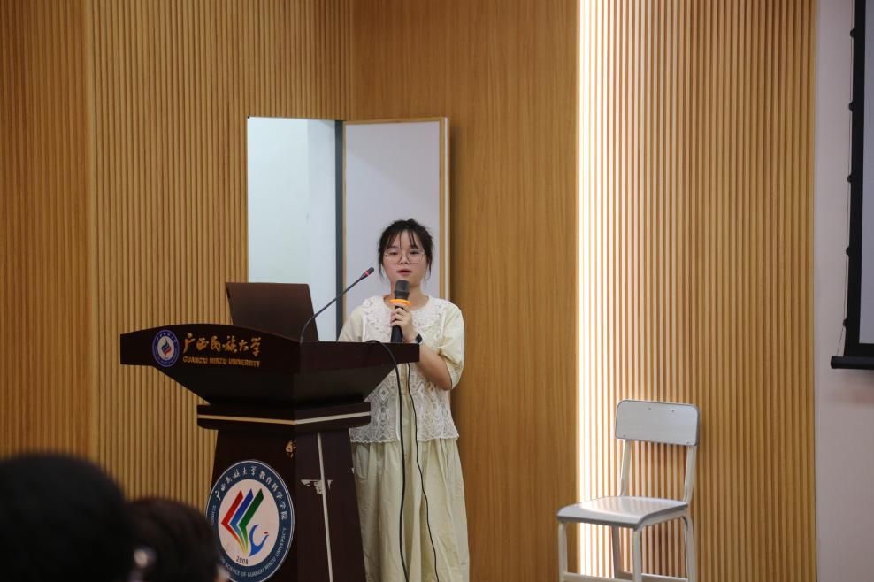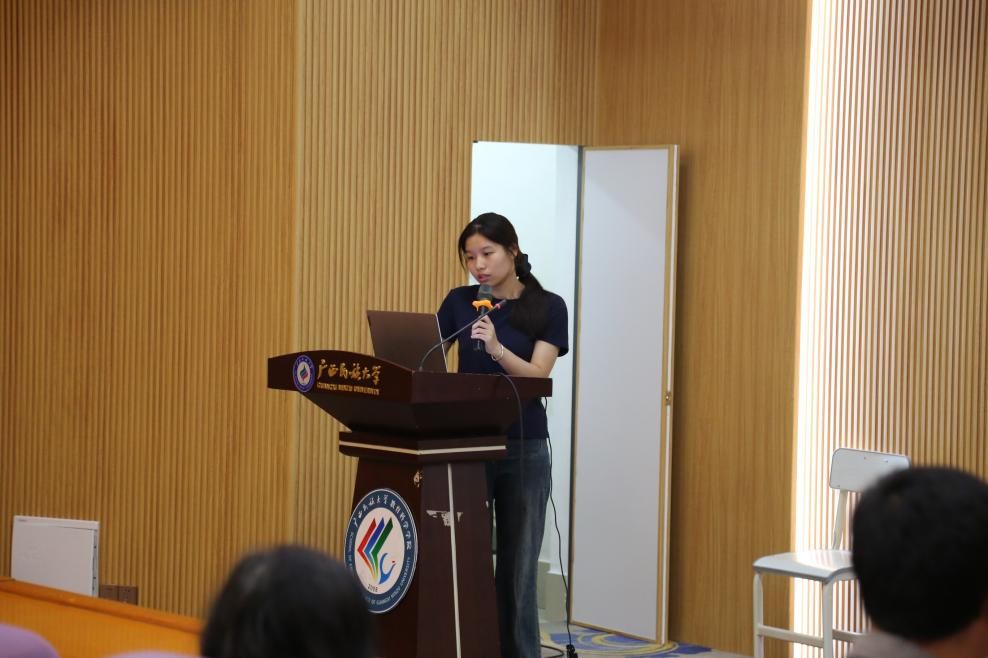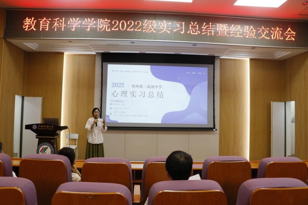 从浦北中学、钦州市第一中学、广西民族高中等9所学校实习回来的学生代表依次发言。他们分享了实习初期的挑战:面对陌生教学环境的迷茫、临时任务带来的焦虑,以及处理校园心理健康突发事件时的无措。但在指导教师的帮助下,实习生们迅速调整状态,以坚韧的执行力完成教学辅助、心理辅导等工作。