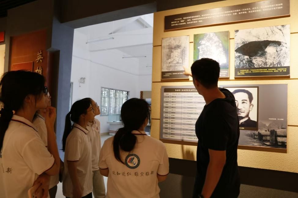 实践期间,团队深入魁星楼、东里革命陈列室、韦拔群故居及列宁岩中的广西农民运动讲习所开展学习调研。在列宁岩,队员们驻足于广西农民运动讲习所课室复原展区,深刻体会到1925年韦拔群等革命先辈在此传播马克思主义、以教育启迪民智、点燃革命火种的奋斗历程。“拔群精神”所蕴含的信仰力量震撼着每一位队员,让他们对“革命理想高于天”有了更具象的认知。