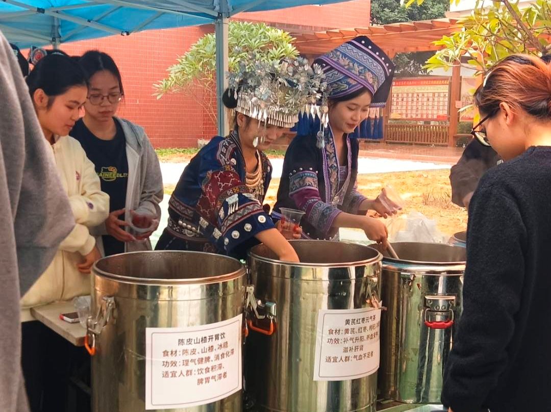 除此之外,本次招聘会现场还创新性地设置了“药食同源·品鉴健康”美食体验区。特色美食与健康饮品不仅彰显了“药食同源”的传统智慧,还为招聘会增添了互动的趣味性,吸引了众多师生前来品鉴交流,成为现场的一大显著亮点。
